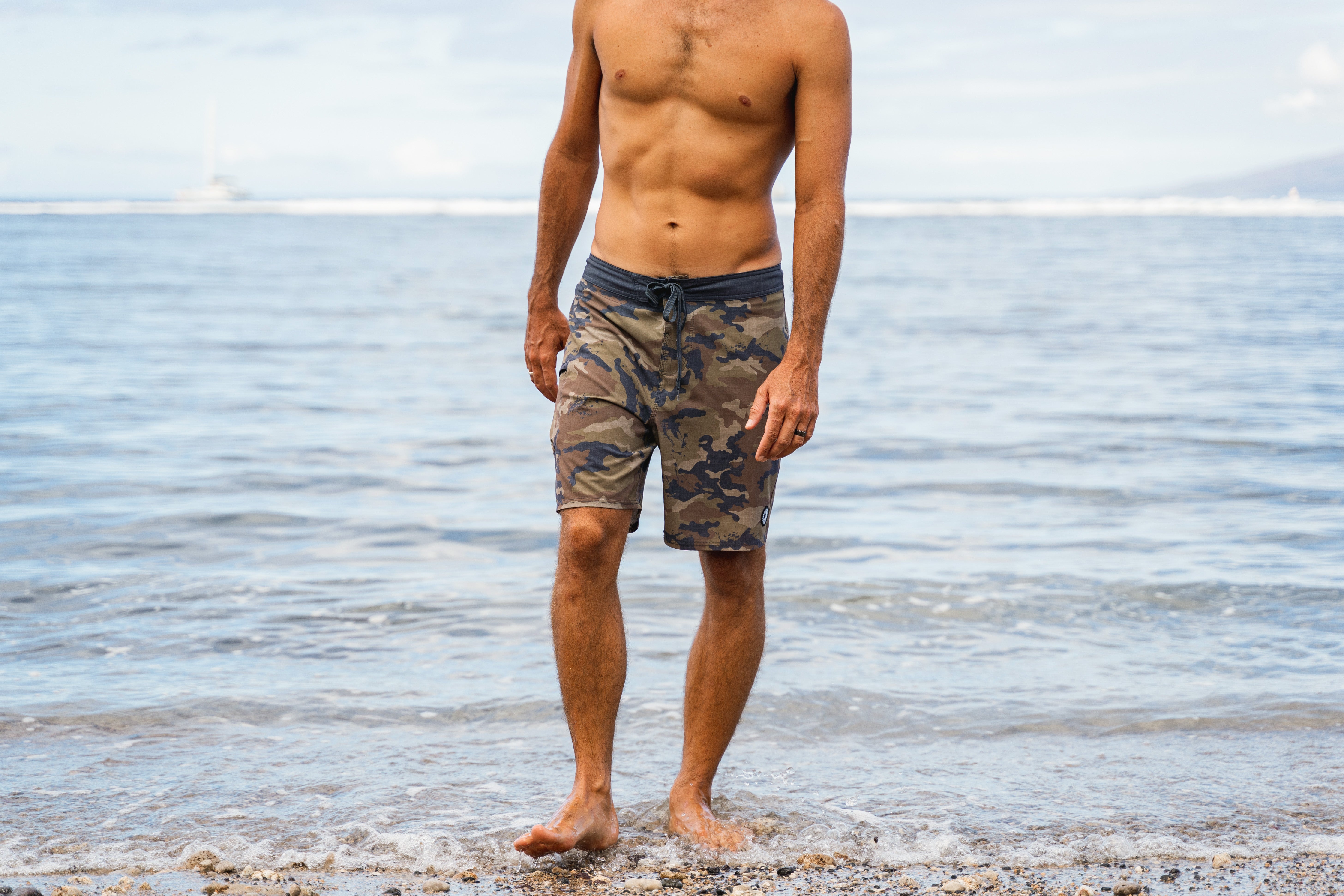 The Reef Camo boardshorts combine timeless earth tones with the latest and greatest in swimwear design. Designed to move with you, these 21" mid-length shorts end at the knee for most guys, and are the perfect pick for anything from casual surf sessions, a day of boating, or just a late night jacuzzi soak. Our men's stretch boardshorts are the perfect lightweight multi-use swim trunks for comfortable everyday wear whether you're surfing, swimming, fishing, boating, or just kicking back. These premium swimming shorts feature built-in quick-dry technology and durable triple-stitching to keep you comfortably secure in and out of the water all day long. These are good shorts!