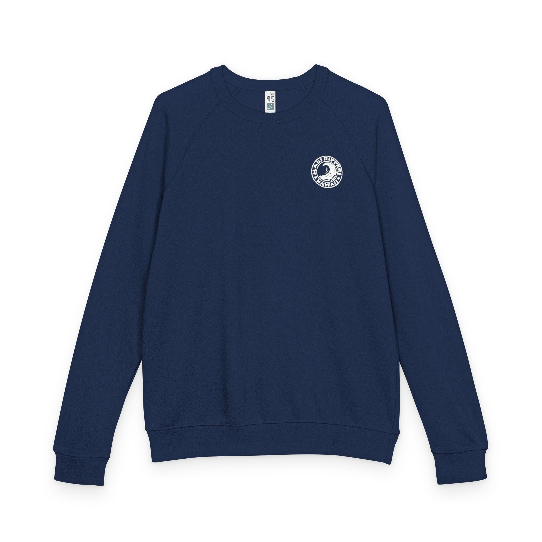 Wave Crest Logo - Navy Unisex Terry Raglan Crewneck