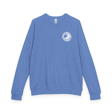 Wave Crest Logo - Heather Royal Blue Unisex Terry Raglan Crewneck